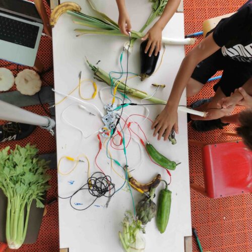 Une initiation originale à la musique électronique à travers la construction d’un grand synthétiseur collectif fonctionnant avec des fruits et légumes interactifs 🍎