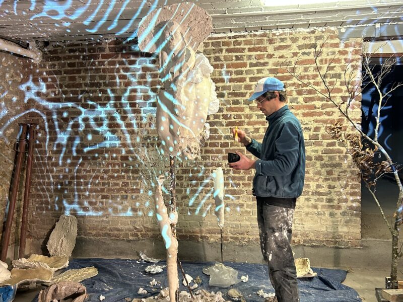 Accompagnés par Simon Lapillonne pour la partie musicale, ils réalisent « Altara », une œuvre hybride entre sculpture et art numérique, où la vidéoprojection plonge la matière dans une métamorphose continue, portée par une réflexion écologique sur le corps et l’identité.